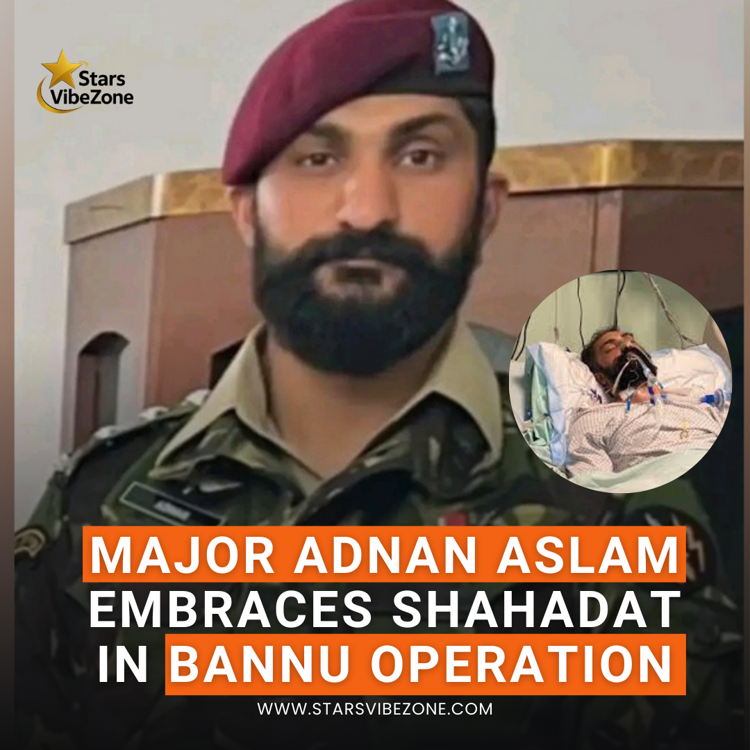 Major Adnan Aslam Shaheed embraced martyrdom in the Bannu operation. Funeral prayers were held at Chaklala Garrison, Rawalpindi, attended by PM, President, and COAS.